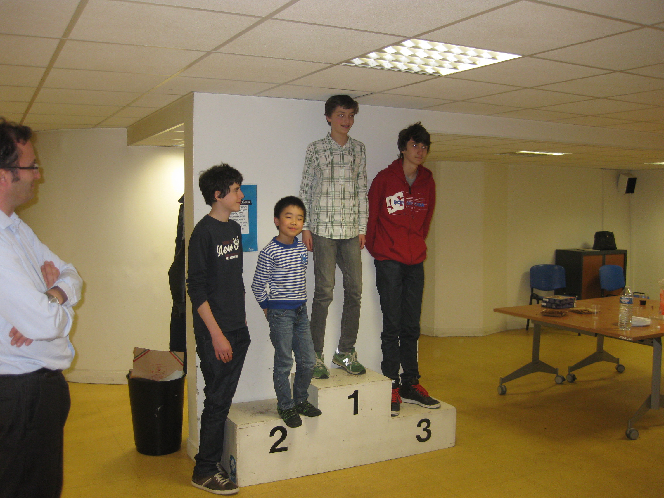 La 2e place est prise par notre arbitre en chef (Rémi) devant la grosse surprise de l’édition : le cadet Ryan Fayed de l’école d’échecs coiffe au poteau votre serviteur et Philippe Maxime ! Le prix jeune revient à Gabin Mariau.