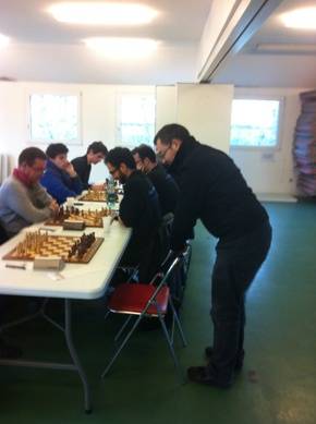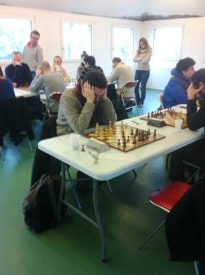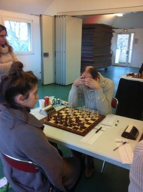 2h45 Dramatique dénouement  sur l’Échiquier 4 .  Rueil ouvre la marque sur une erreur défensive d’Olivier qui perd du matériel sur une fourchette de cavalier. Rueil 1 – Enghien 0