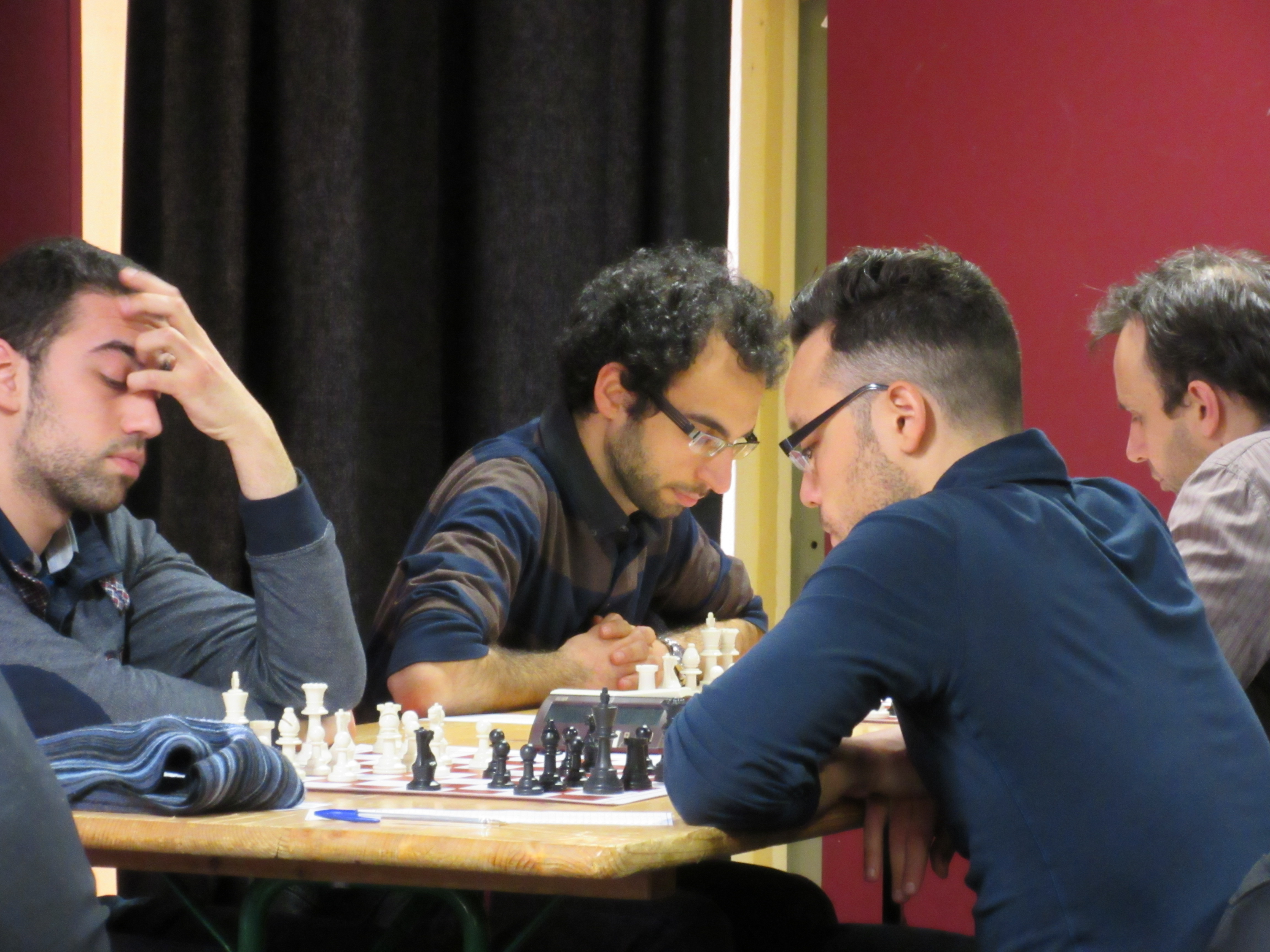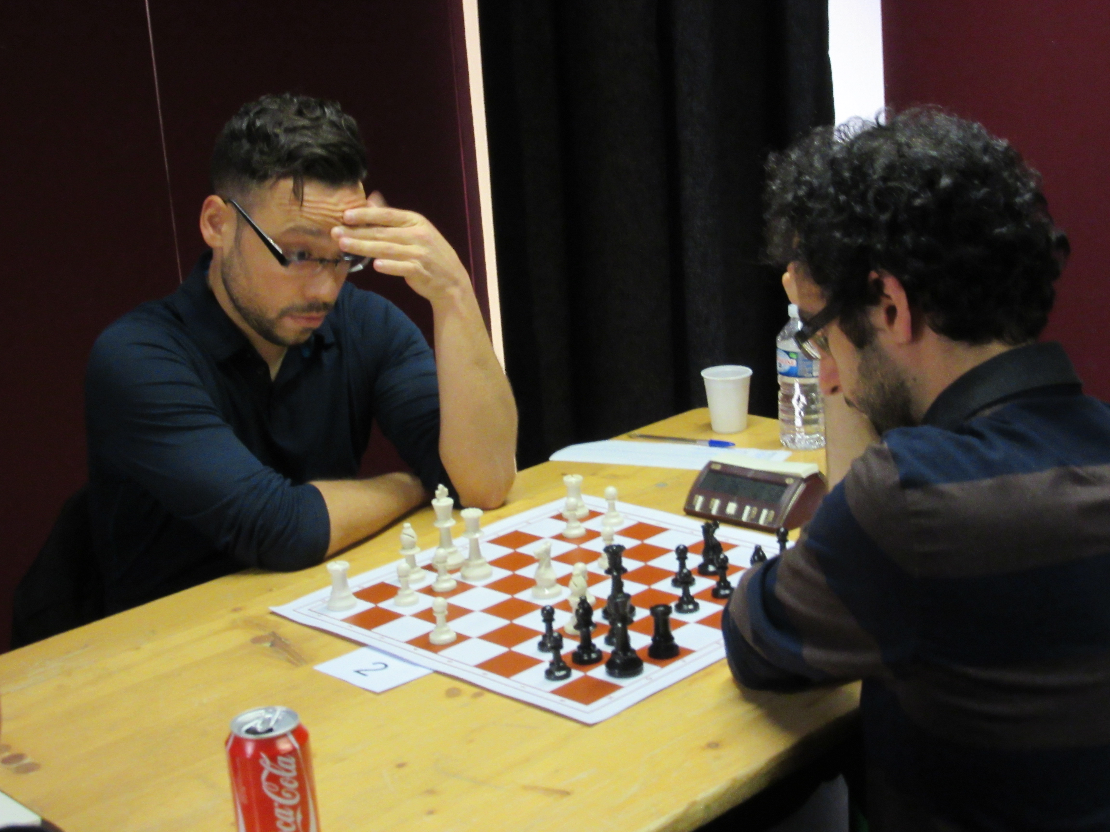 Avant la dernière ronde, c’est un autre Réda qui menait la compétition avec 4,5/5, devant un pack de joueurs à 4 points. Pour Réda et moi, les données étaient donc claires : il fallait absolument gagner ! De mon côté, grâce à un appariement clément et malgré quelques frayeurs, je pus m’acquitter de ma tâche assez rapidement. Pour notre Réda, c’était plus ardu, car il était opposé avec les noirs au leader du tournoi. Leur partie aura tenu les spectateurs en haleine !