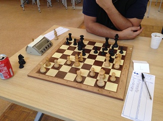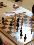 Échiquier 7 : Olivier (noirs) laisse un pion à son adversaire pour activer sa batterie de fous.