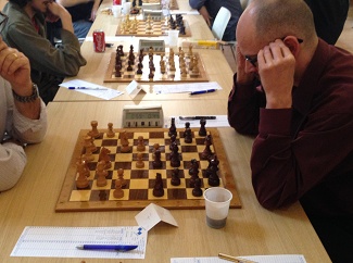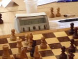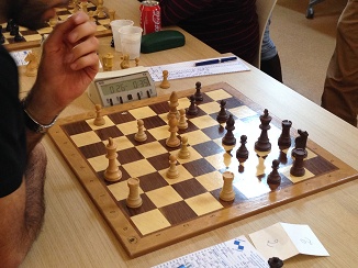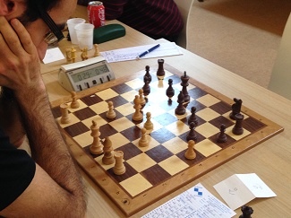 Échiquier 7 : Olivier (noirs) est mal au temps – 3 minutes seulement à la pendule contre 24 à son adversaire.