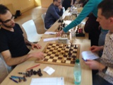 Il se passe quelque chose sur l’échiquier 5 – Les deux joueurs ont joué à une vitesse incroyable dans une partie débridée et ouverte et le dénouement semble proche. Ils en sont à leur 23e coup alors que les autres tables en sont au plus au 12e. La situation semble bien compromise pour Joël.