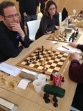 Géraldine : Les deux équipes ont sorti la grosse artillerie – Le capitaine de l’équipe d’Enghien a adopté le placement 2-2-4 : on perd sur les deux premiers échiquiers, on annule sur les deux suivants et on engrange les points sur les 4 derniers.