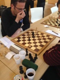 Premier point pour Enghien et avec la manière !!! Attaque fulgurante d’Antoine (blancs) – son adversaire perd un pion puis la partie un coup plus tard.