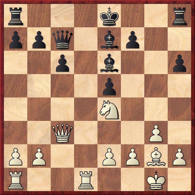 13. Cd4 était l’autre coup tentant, mais pour qu’il soit vraiment efficace, il faut qu’il soit conditionné à une idée subtile : 13… Fe7 14. b3 !! entérinant le sacrifice de pion pour ouvrir les lignes. Si le pion est pris, les noirs sont au bord de la défaite : 14… cxb3 15. axb3 et des sauts de cavaliers en b5 et d5 menacent.