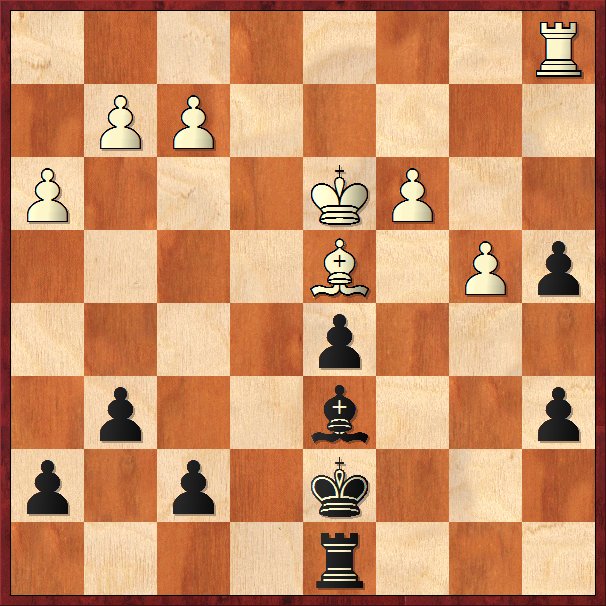 Benoît joua dans la partie 32…h5 ! Les blancs jouèrent 33. gxh5 ( 33. g5 était peut-être plus résistant, mais le roi noir va s’infiltrer aussi en passant par g6), et après 33…Rh6 le monarque noir va s’infiltrer de manière décisive pour prendre un point très précieux.