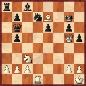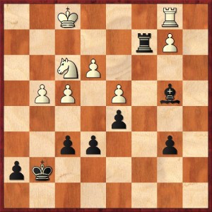 Certes l’avantage des noirs est évident : fou actif, tour c2 infiltrée dans le camp ennemi. Mais il s’agit maintenant de ne pas se tromper, et de trouver la bonne suite dans cette position critique. Nous sommes au 32e coup, que jouez-vous avec les noirs ?