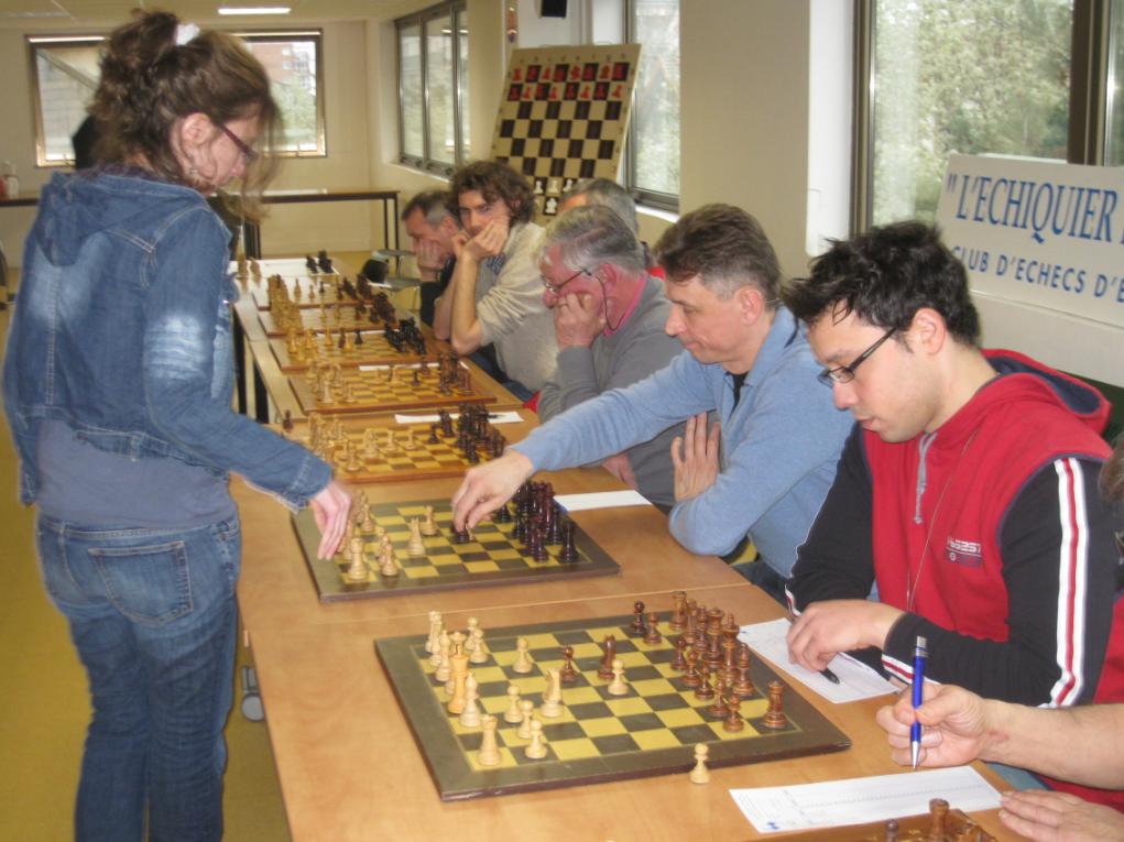 – le 18 décembre 2010, Marie Sebag (qu’on ne présente plus !), invitée pour une simultanée contre 15 Enghiennois, est repartie avec le score écrasant de 17 (!) victoires et 1 défaite ;