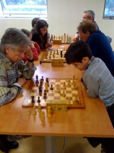 Les jeunes d’Enghien et du club du Petit Pouchet, invités pour l’occasion, ont bien vite montré qu’ils n’étaient pas là pour faire de la figuration. Ainsi, dès la première ronde, Marie L montra à Philippe C de quel bois elle se chauffait, et fit de même avec Didier N et Michel ! Elle finira meilleure jeune avec 3 points sur 5, tout comme Sarah E, qui mit en échec Emmanuel H et le redoutable Spencer !