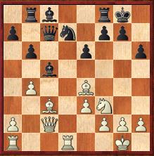La dame noire n’est pas défendue. Après 16…Fe7 les blancs gagnèrent par 17.Fh7+ 1-0 (sans attendre 17…Rh8 18.Fxg7+ suivi de 19.Dxc7.)