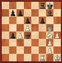 22.Th8+! Rg7 (22…Rxh8? 23.Dh1+ Rg7 24.Dh7 mat) 23.Th7+ Rg8 (le pion est imprenable à cause d’un mat rapide après 24.Dh1). Les blancs refusèrent la répétition en jouant 24.Dh1 et finir par l’emporter même si après 24…Dxg6 rendant la pièce, les noirs avaient un petit avantage.