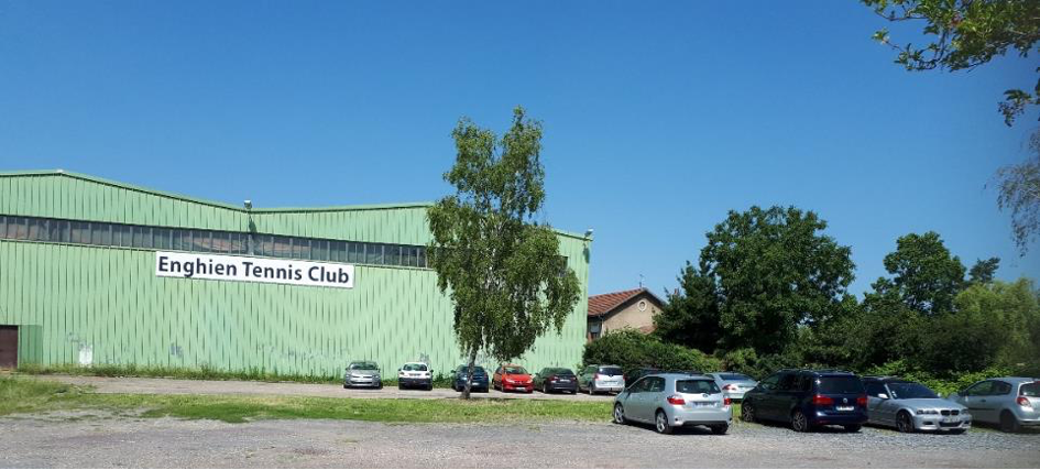 La salle de jeu se trouve au premier étage des courts couverts de l’Enghien Tennis Club. L’entrée est située à l’arrière du bâtiment.