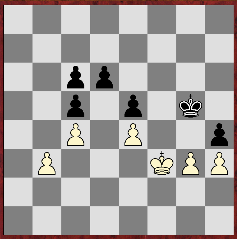 Les finales de pions peuvent rapidement tourner au vinaigre. L’idée des blancs est simplement de prendre en h4 puis protéger le Ph3, après quoi ils ont le pion passé éloigné et une finale aisément gagnée.