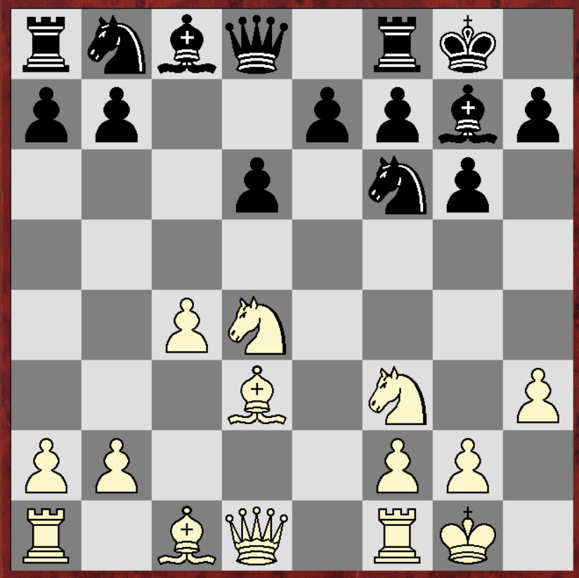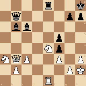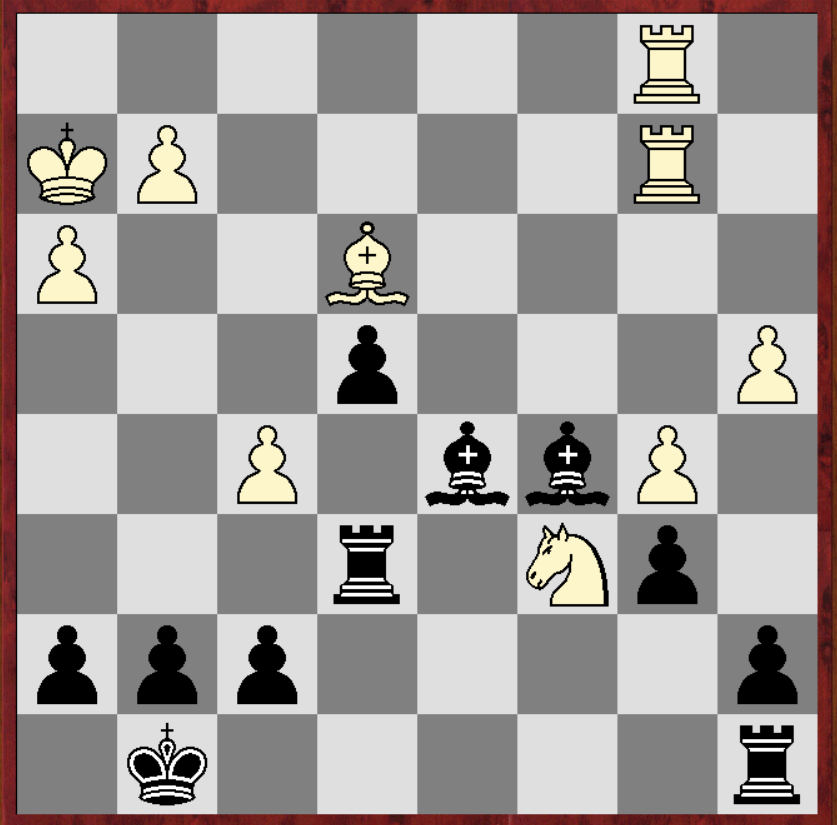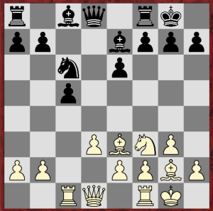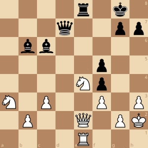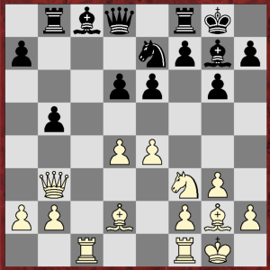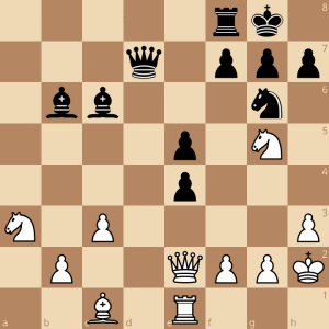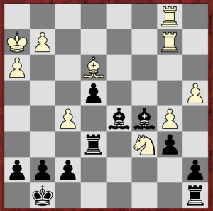 Olivier R nous aura livré une partie positionnelle aux petits oignons. Imperceptiblement, les noirs sombrent dans une position très difficile. J’en veux pour preuve que l’ordinateur évalue déjà la position suivante comme nettement avantageuse pour les blancs :