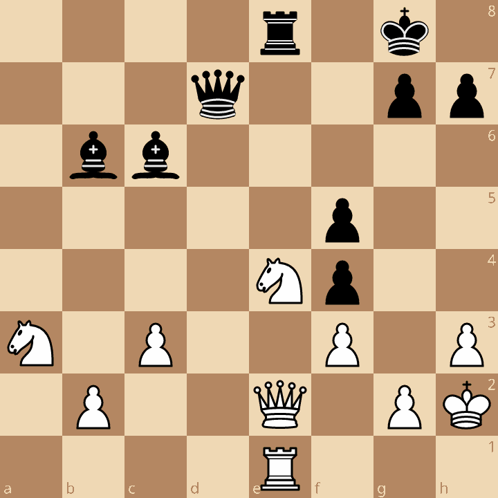 Quant à Nathan, on ne va pas vous raconter de salades non plus : lui aussi aura rapidement été en position dominante, à tel point que, dans la position suivante, les noirs se sentent déjà obliger de recourir à une action désespérée avec 1…f5.